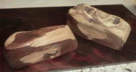 今日も日課の「箸置きづくり」と並行しての「文鎮(ぶんちん)づくり」です。下拵え(したごしらえ)は昨日終えています。尤も、エンジュを鉈(なた)で割るだけのものです。