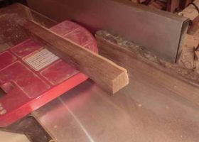 その平面化された面を手押し鉋の側面の定規(じょうぎ)にあてて別の面を刃にあてます。これで2面のなす角度が直角になります。