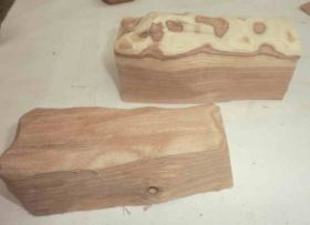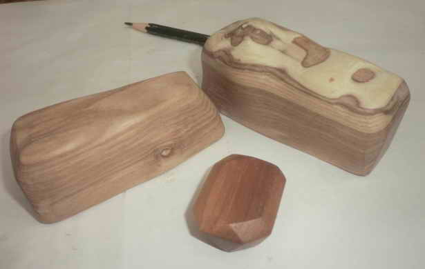 次に試したのはエンジュです。木偏に鬼と書きます。床の間や炉縁に使われる秀木です。目に沿ってパカンと割れます。しかも、その割れ口がキザキザです。合わせてみるとピタッと吸い付きます。ほぼ理想的です。とりあえず2個をつくることにします。