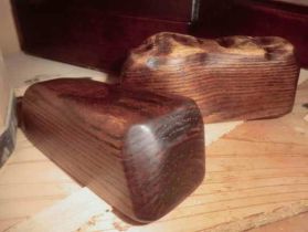 朝は文鎮(ぶんちん・ペーパーウェイト)づくりの続きです。突然の文鎮づくりですが、実は、つい先般、筆箱と筆置きをつくったばかりです。その流れでその気になったものです。木の中に鉛を仕込むだけの簡単なつくりです。